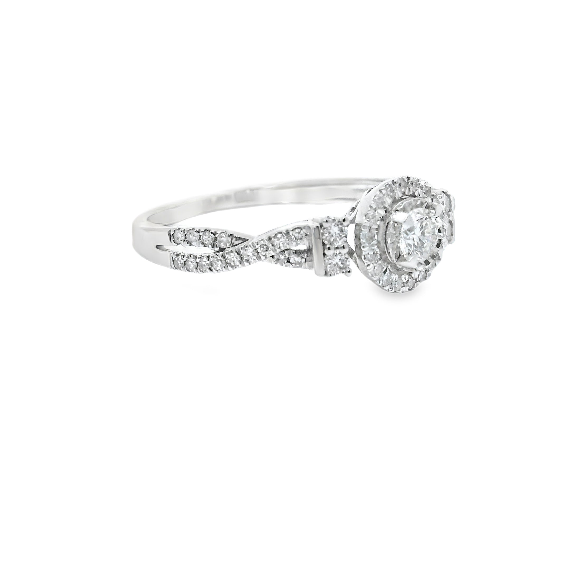 14K White Gold Elegant Twisted Ring with Multi Stone Round Cut Diamond 0.36 CTTW