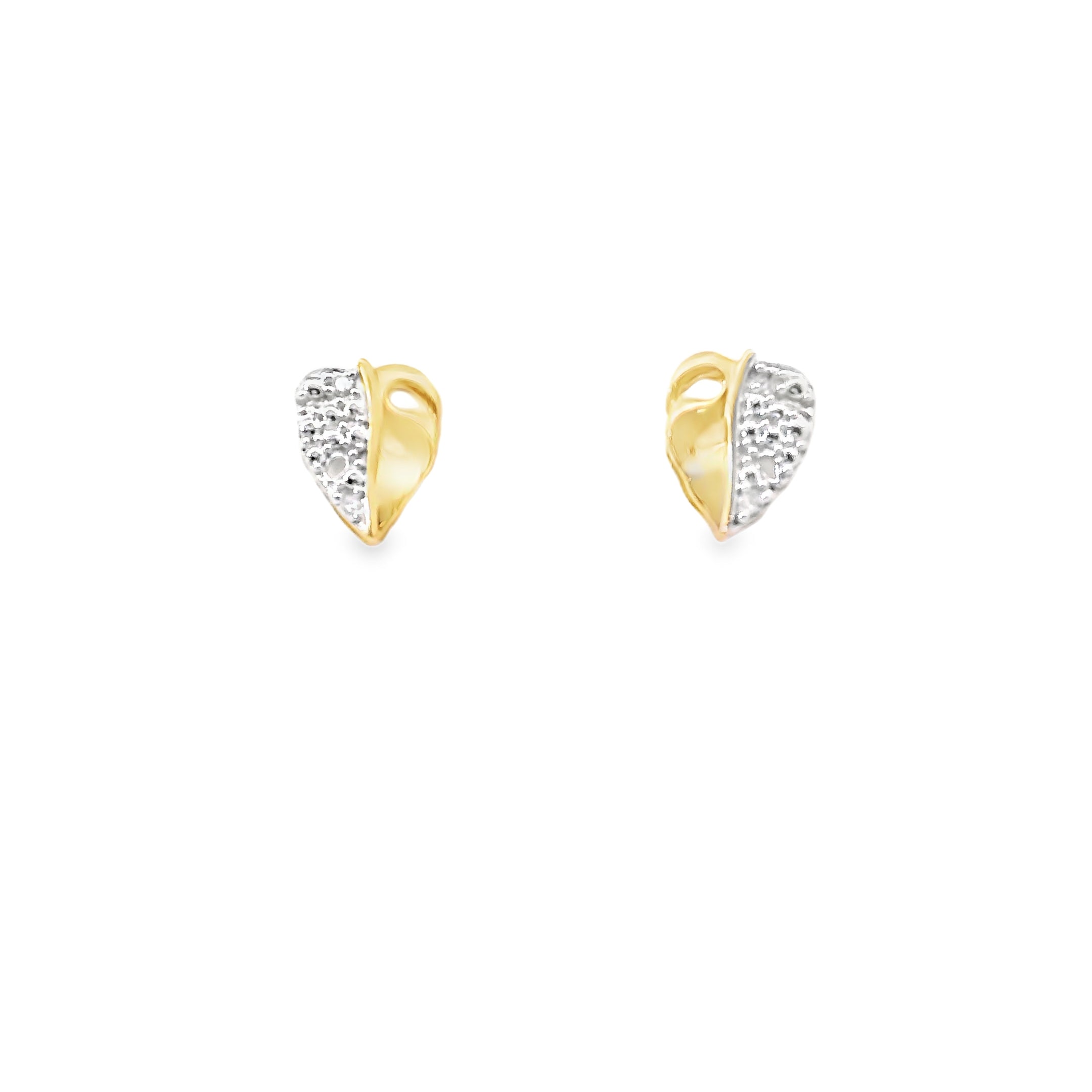 Sterling Silver Gold-Plated Heart Stud Earrings with Diamonds