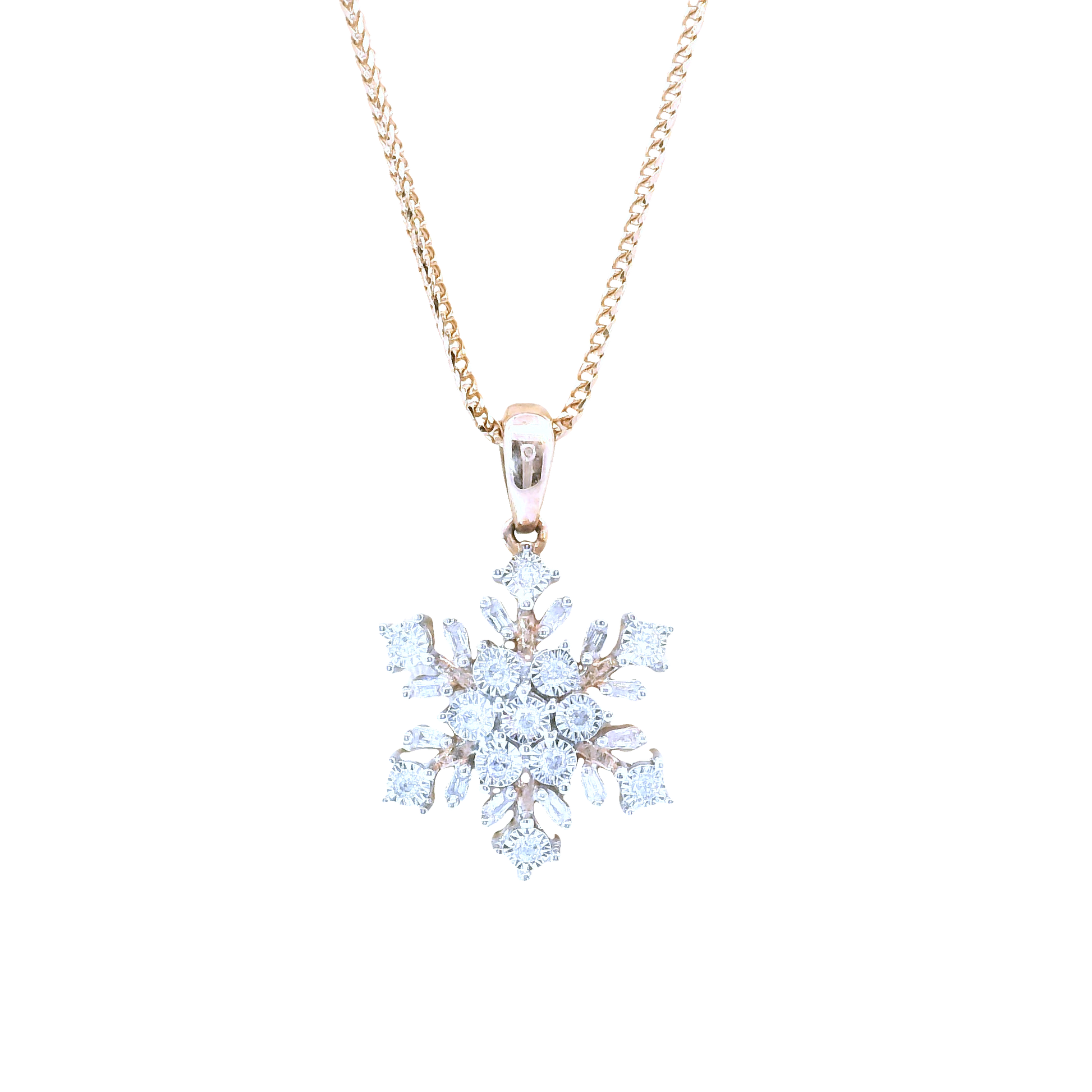 10K Rose Gold Diamond Snowflake Pendant 18 Inch Necklace Set 0.15 CTTW