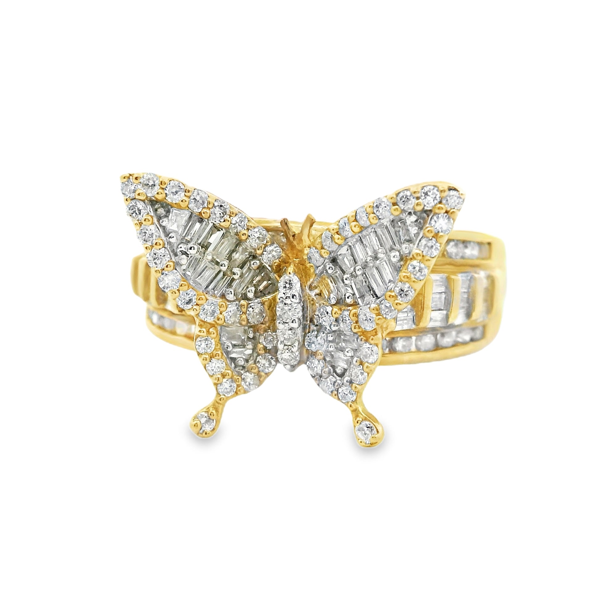 10K Yellow Gold Fancy Baguette with Round Cut Diamond Butterfly Ring 0.78 CTTW