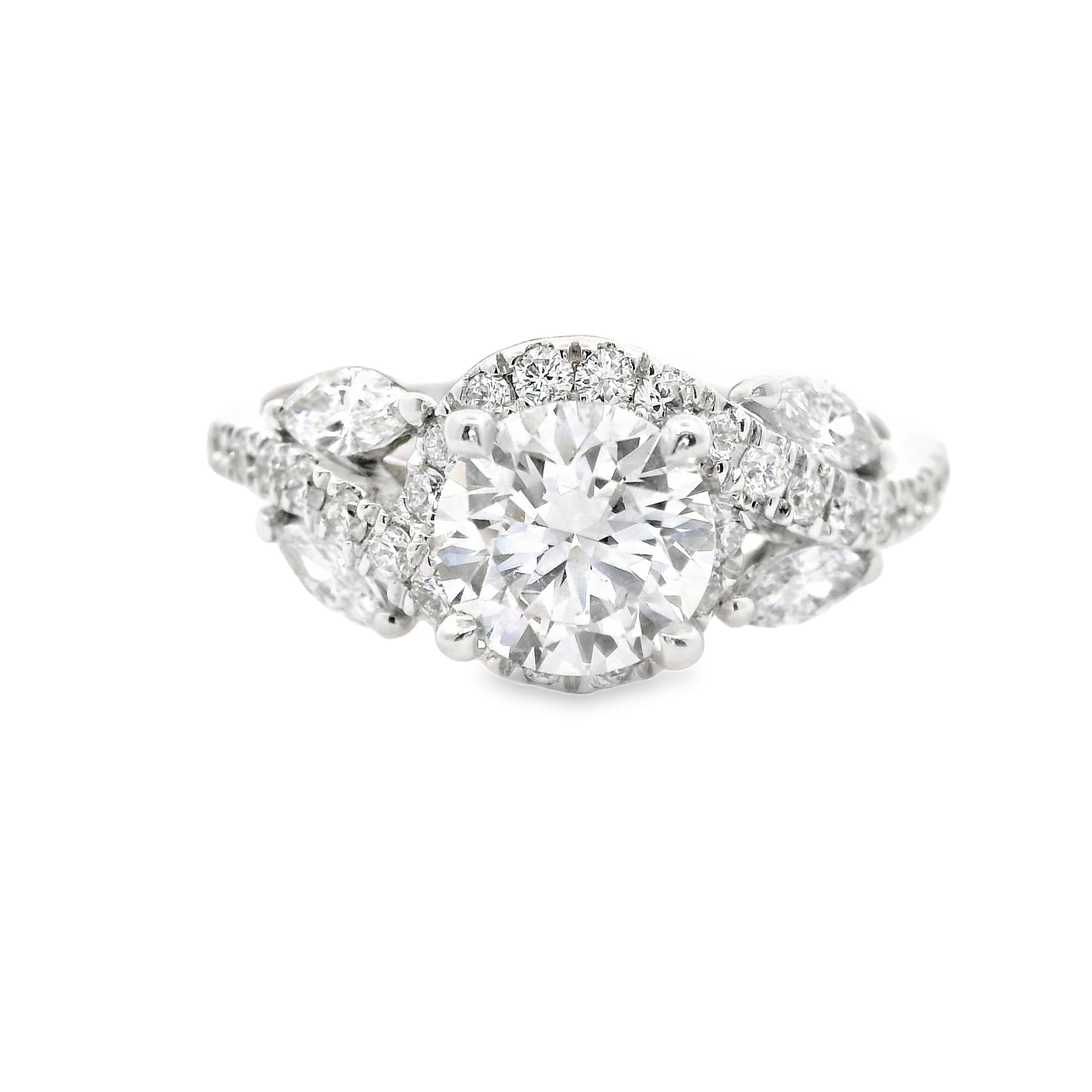 14K Elegant Leaf Multistone Round Brilliant Cut Lab Diamond Ring 1.70 CTTW