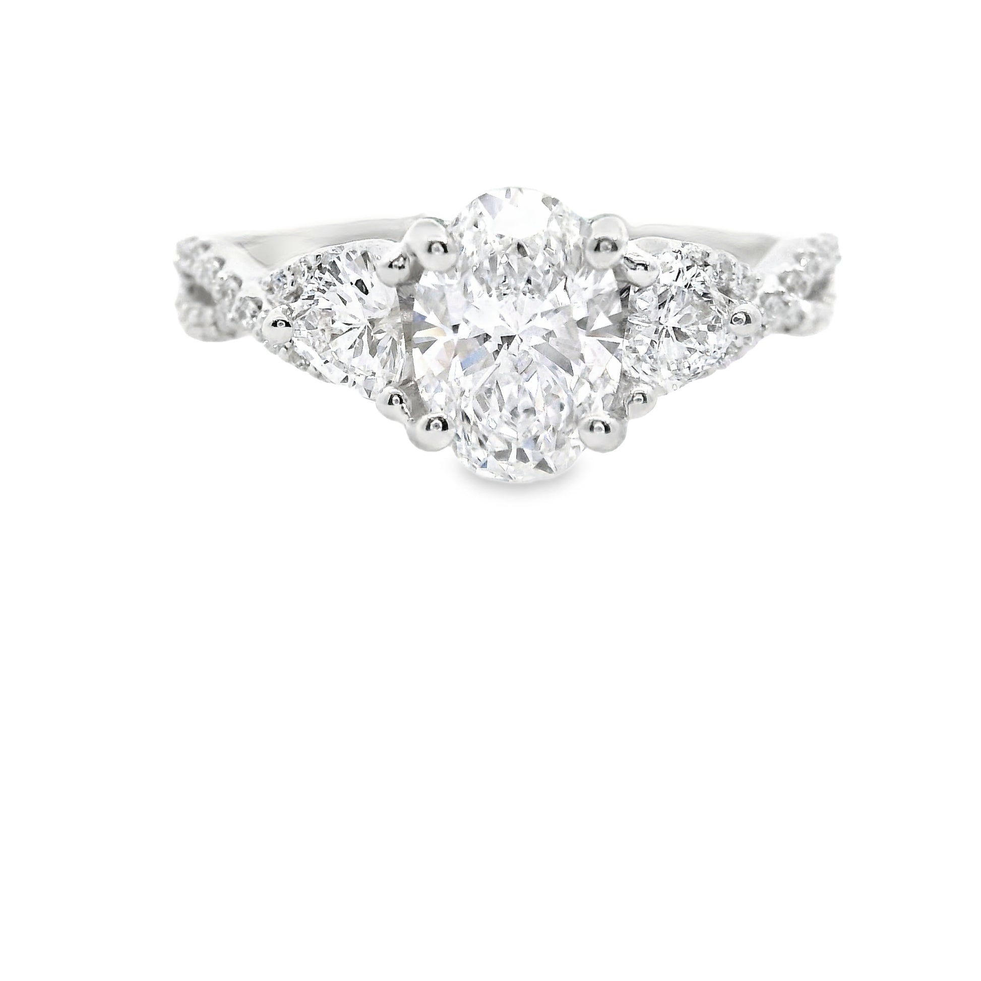 14K White Gold Elegant Twisted Multi Stone Brilliant Round Cut Lab Diamond Ring 1.52 CTTW